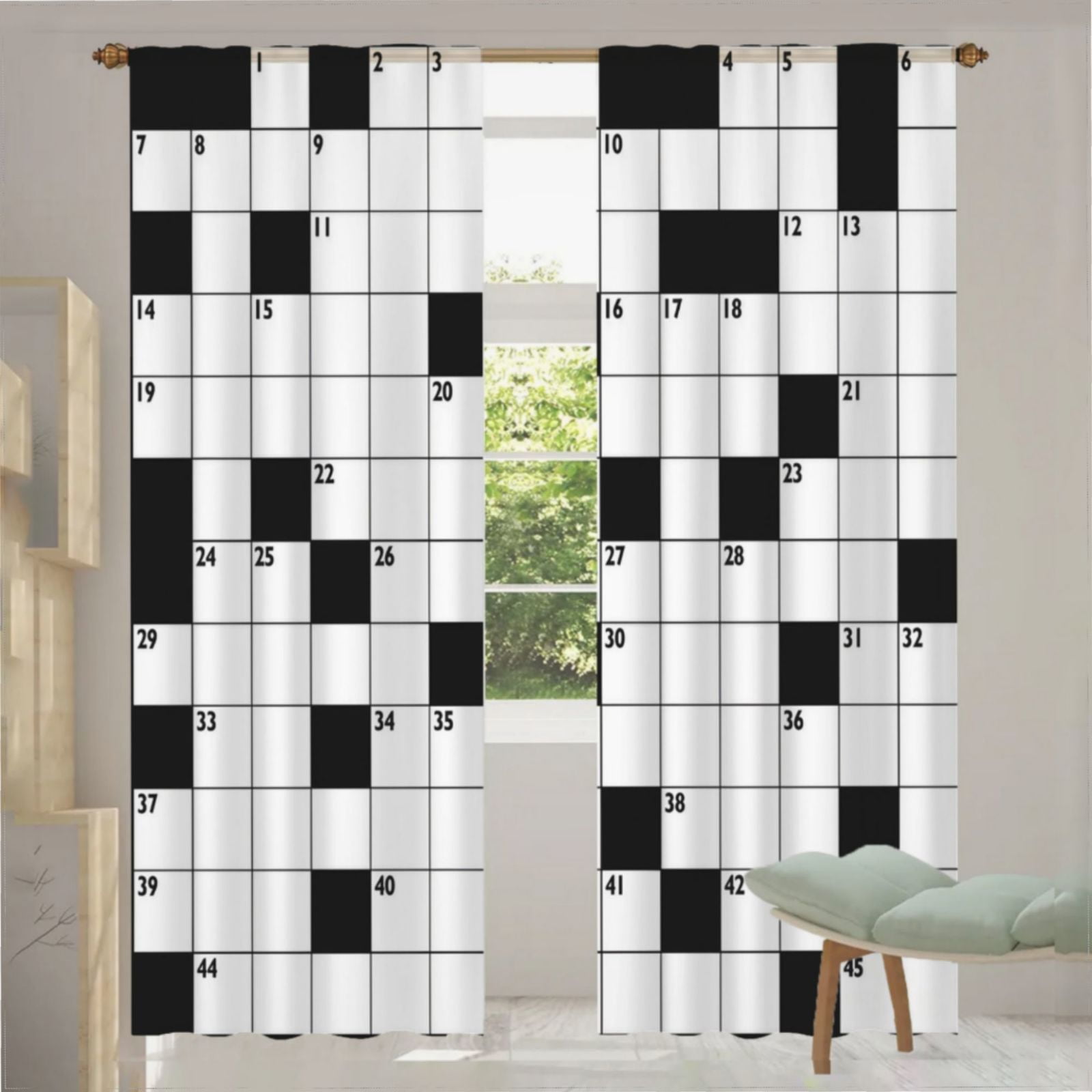 Crossword Empty Boxes Pattern Curtains for Living Room Bedroom Decor