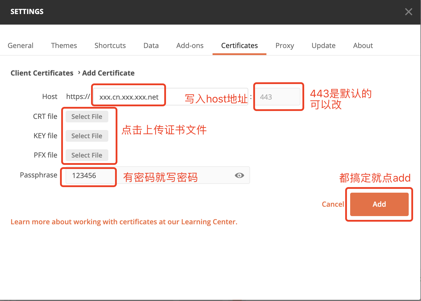 Working with certificates Postman Learning Center