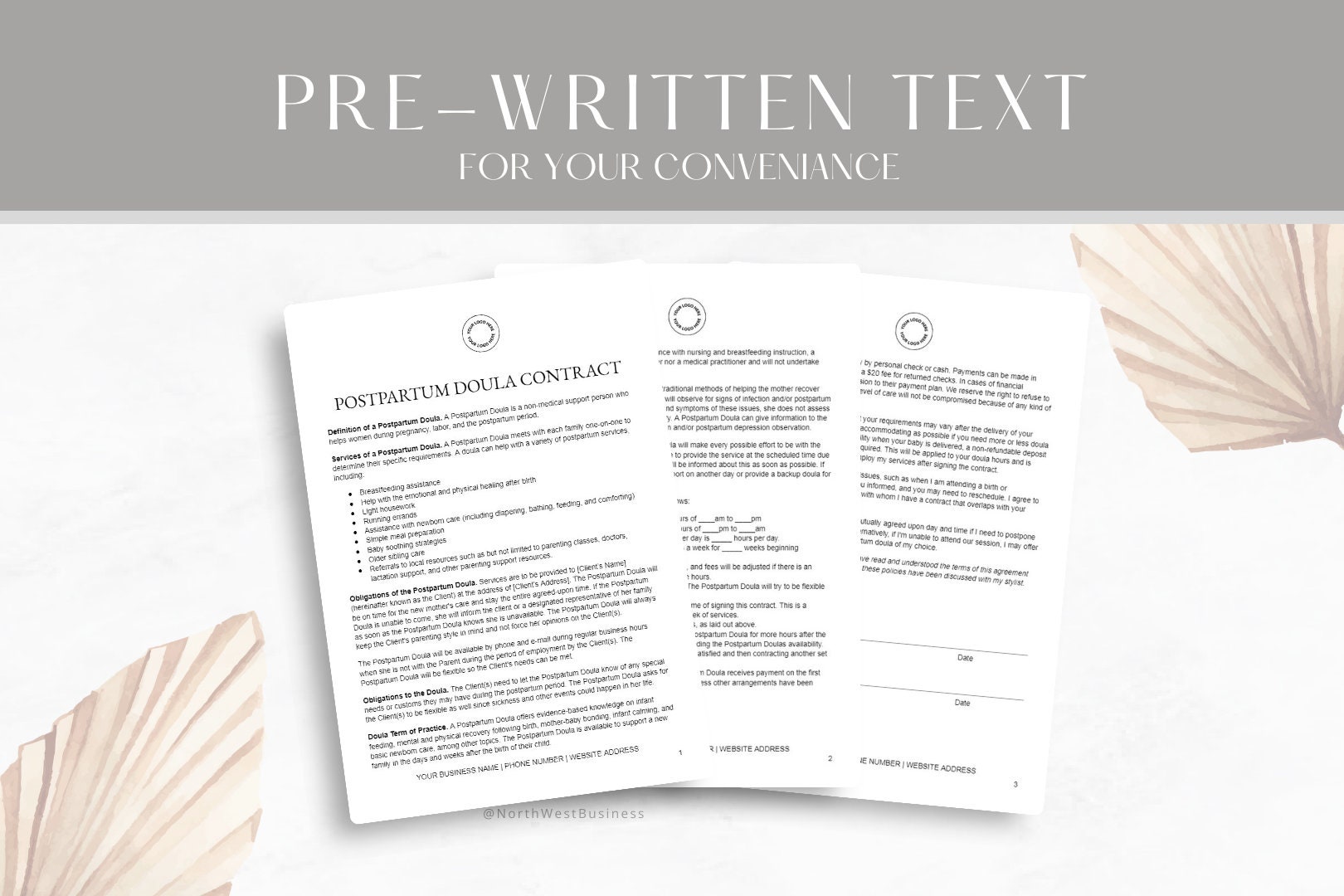 Postpartum Doula Contract Template Attorney Written Editable Instant