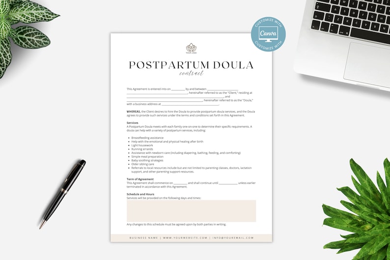 Postpartum Doula Contract and Agreement Template Mama Did It