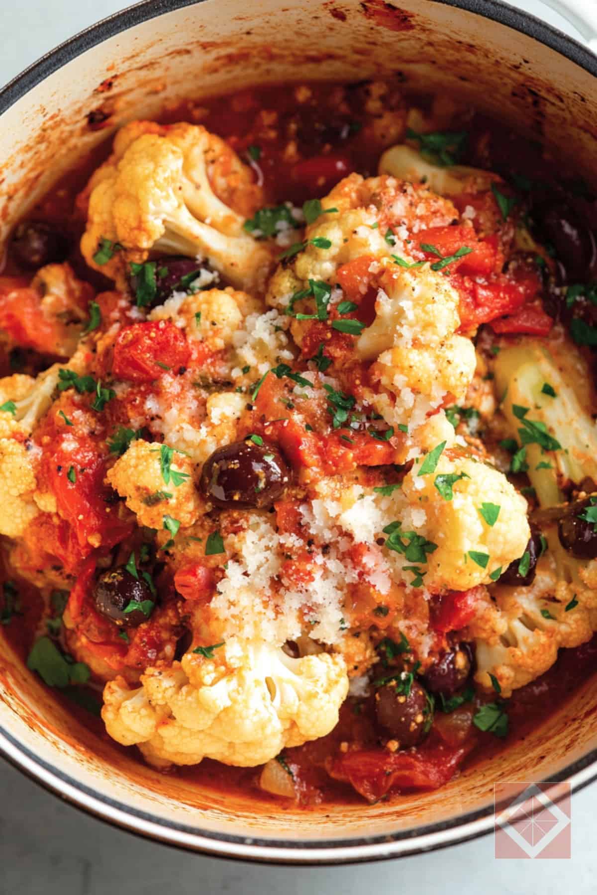 Best Pot Roasted Cauliflower with Tomatoes Olives One Pot Recipe