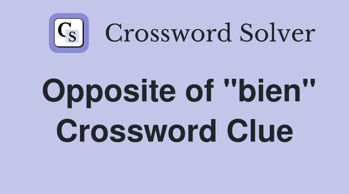 Opposite of quot bien quot Crossword Clue Answers Crossword Solver