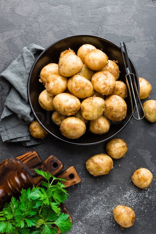 Premium Photo A pan filled with potatoes sitting on top of a table