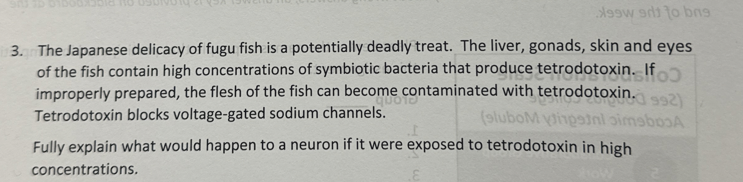 Solved The Japanese delicacy of fugu fish is a potentially Chegg com