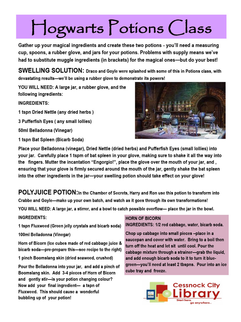 Hogwarts Potions Class PDF Harry Potter