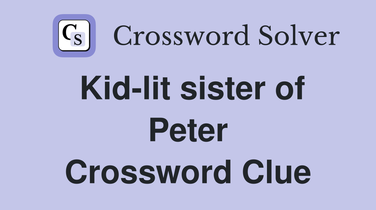 Kid lit sister of Peter Crossword Clue Answers Crossword Solver