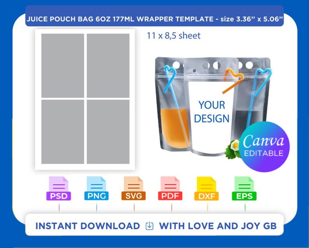 Juice Pouch Bag Template Png Svg Dxf Eps Label Wrap Canva