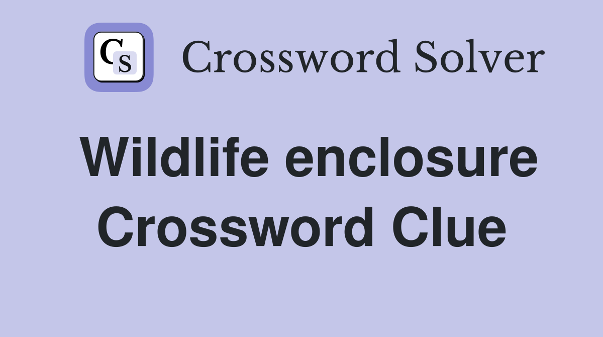 Wildlife enclosure Crossword Clue Answers Crossword Solver