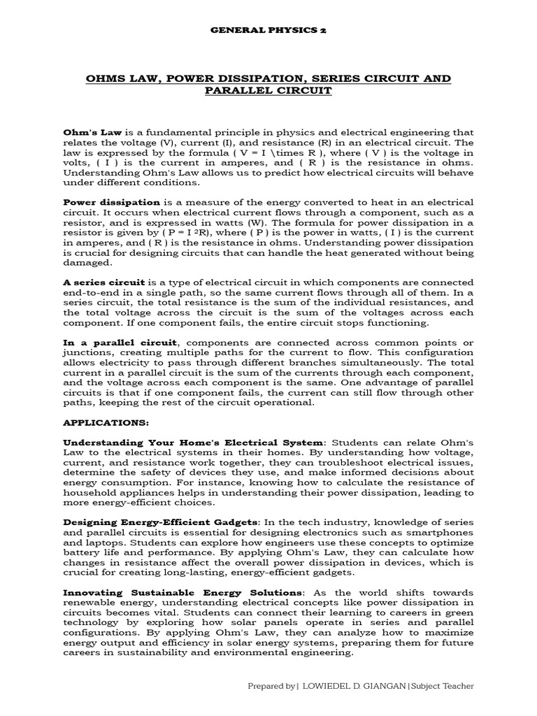 Oohms law Power Series Parallel PDF Series And Parallel Circuits
