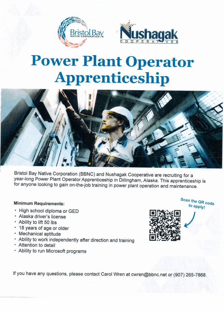 Power Plant Operator Apprenticeship Bristol Bay Native Association