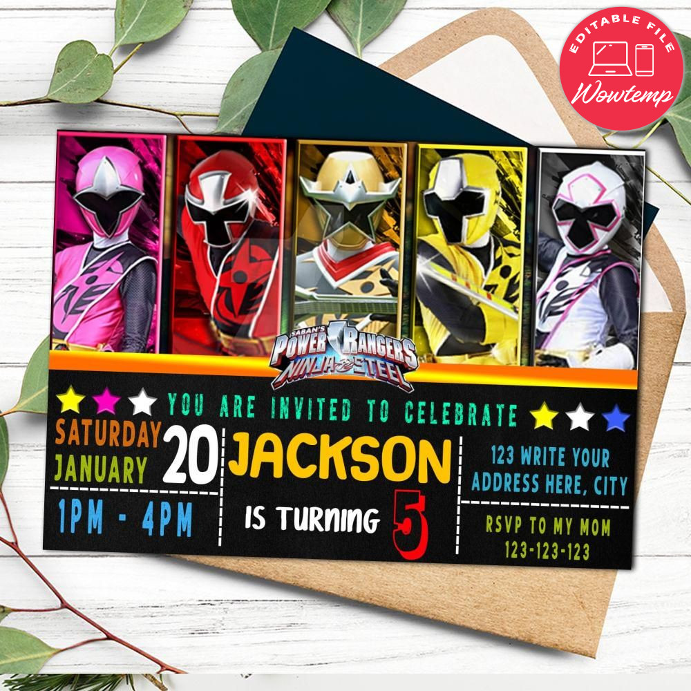 Editable Power ranger invitation Instant Download Wowtemp