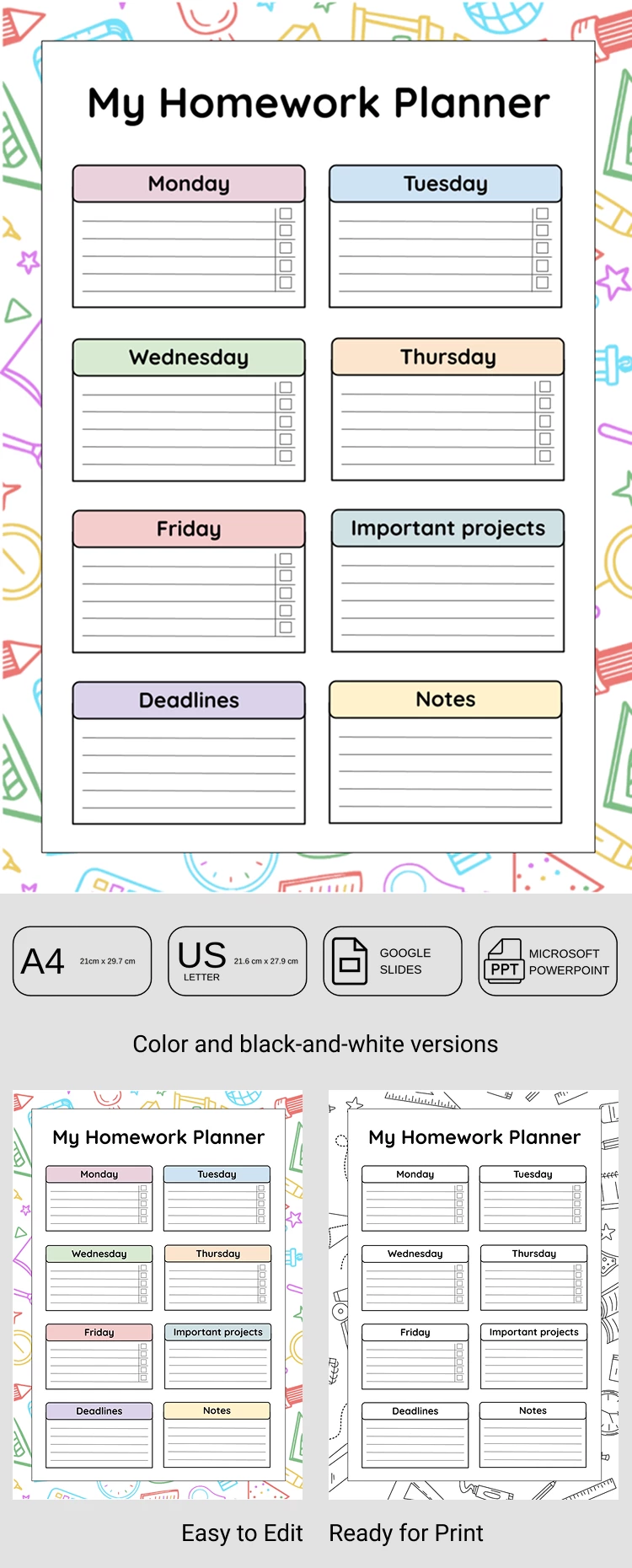 Free Printable Homework List Template in Google Slides and Microsoft