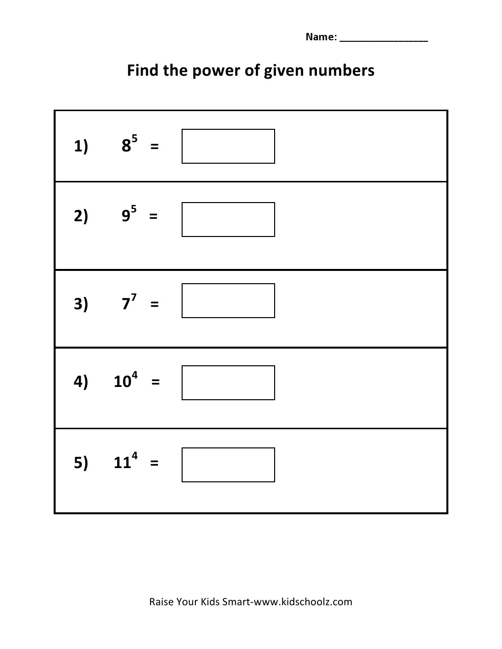 Grade 5 Powers Worksheet 2 Kidschoolz