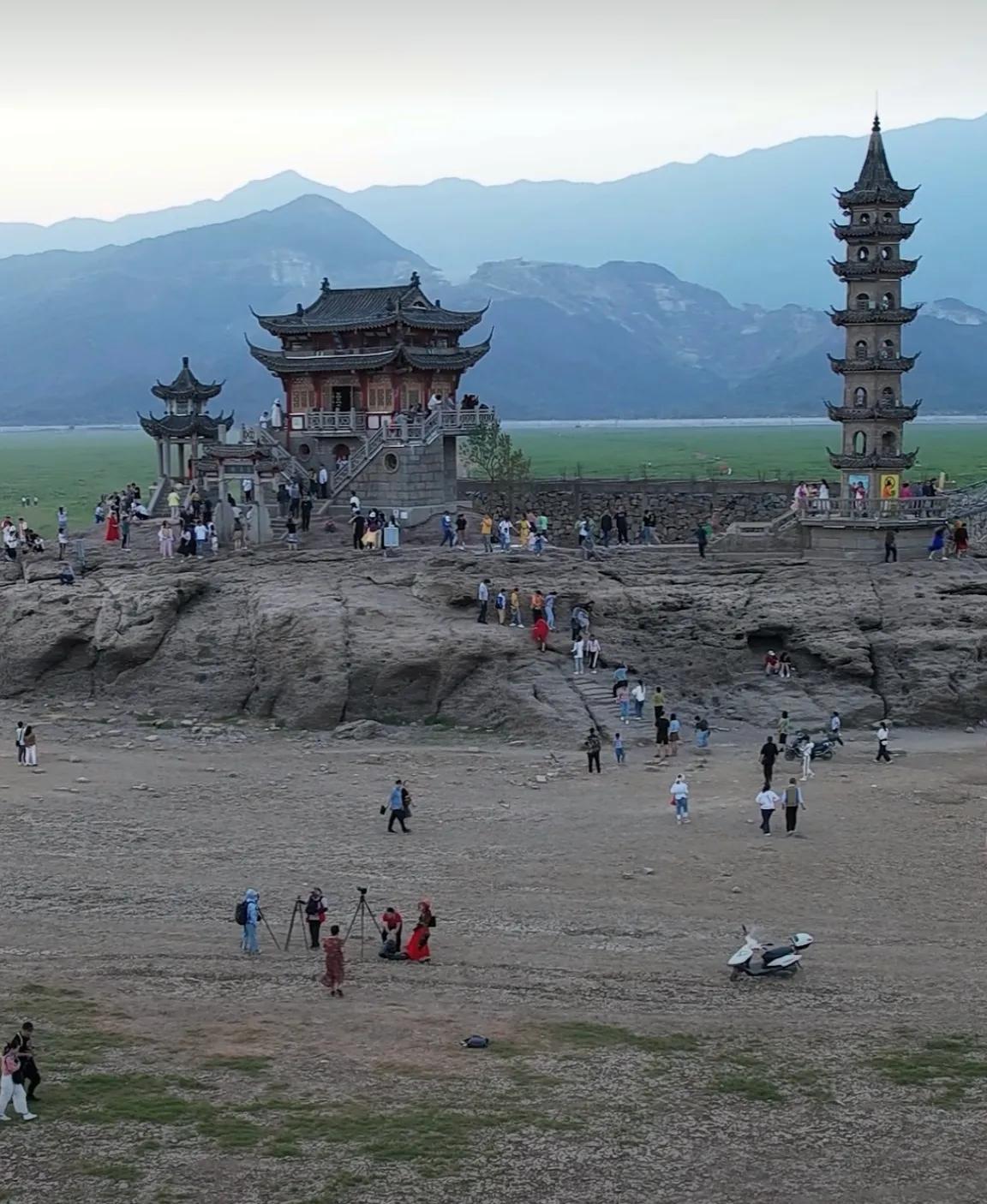 Luoxingdun stone island emerges from Poyang Lake due to drought