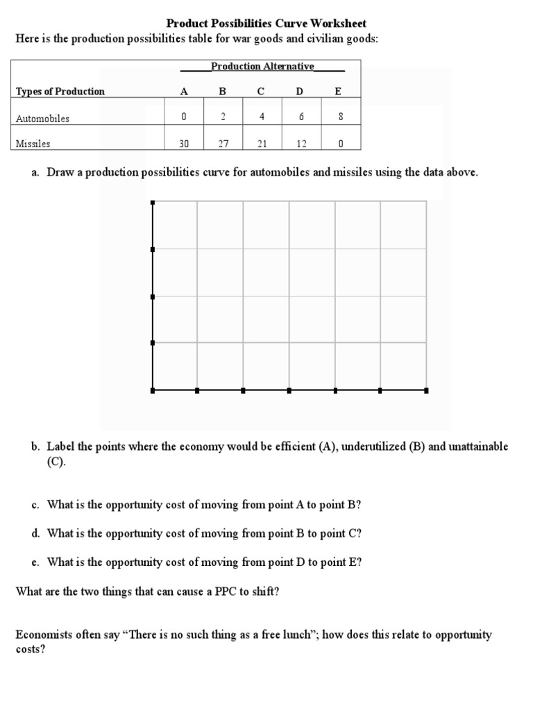 Production Possibilities Frontier Worksheet Printable Calendars AT A