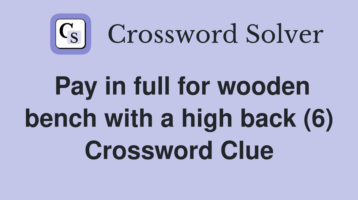 Pay in full for wooden bench with a high back (6) Crossword Clue