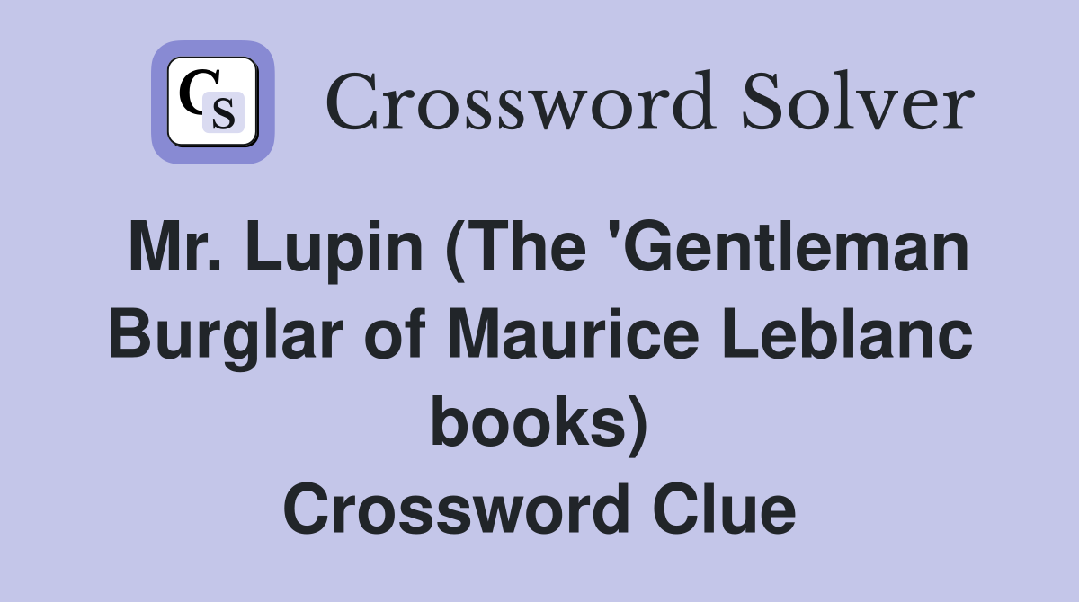Mr Lupin (The #39 Gentleman Burglar of Maurice Leblanc books) Crossword