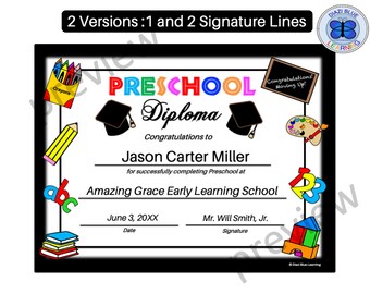 2 Preschool Graduation Certificates Diploma Preschool Etsy