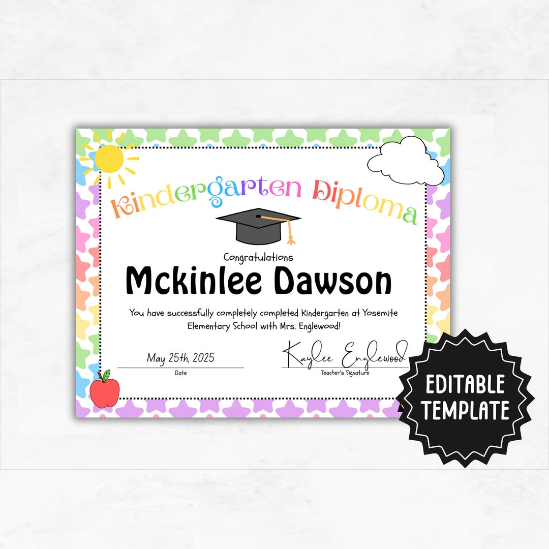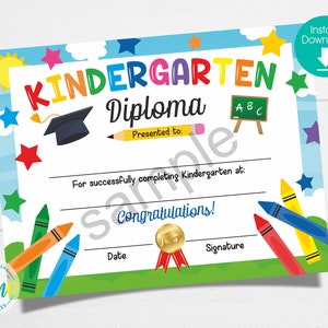 Kindergarten Graduation Diploma Letter Size 8 5 X Etsy Canada