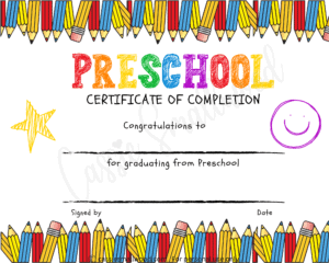 Preschool Kindergarten Graduation Certificate End of Year Award