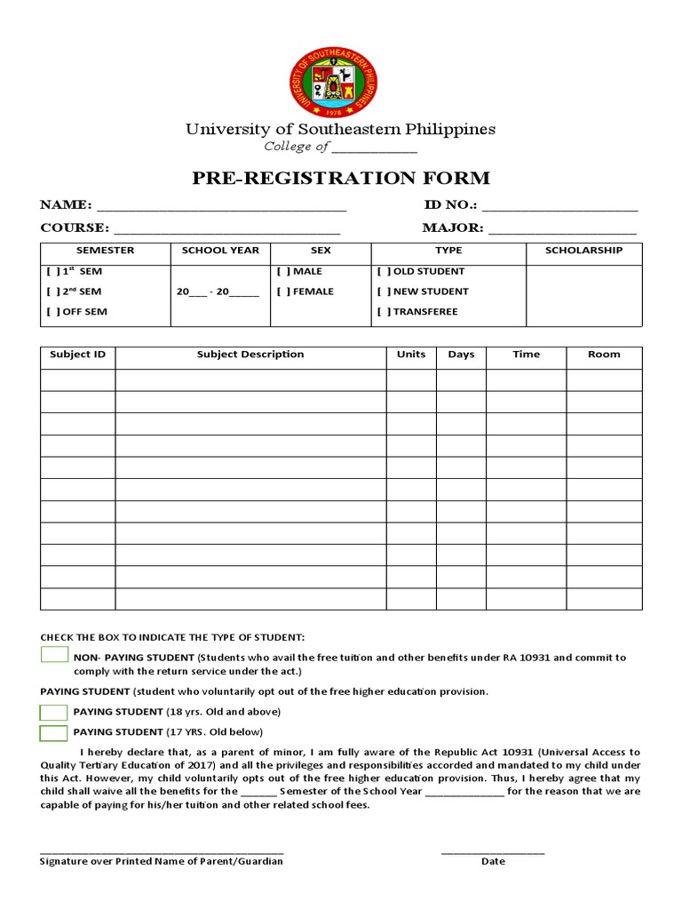 SOR Pre Registration Form Fill Out and Sign Printable PDF Template