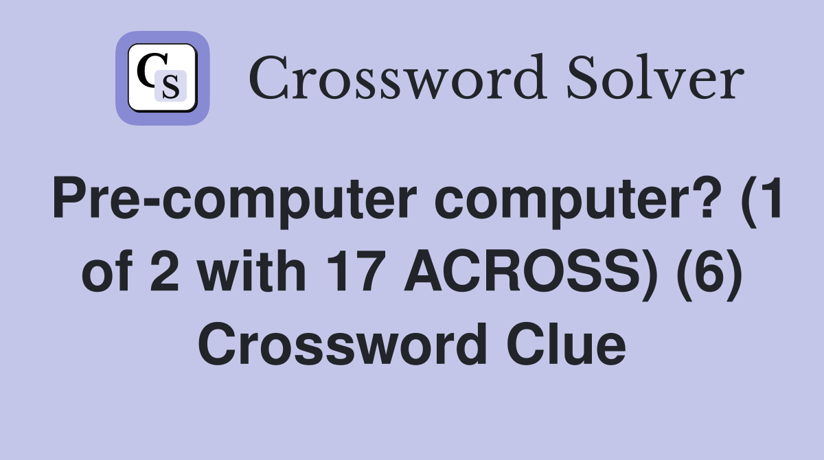 Pre computer computer? (1 of 2 with 17 ACROSS) (6) Crossword Clue