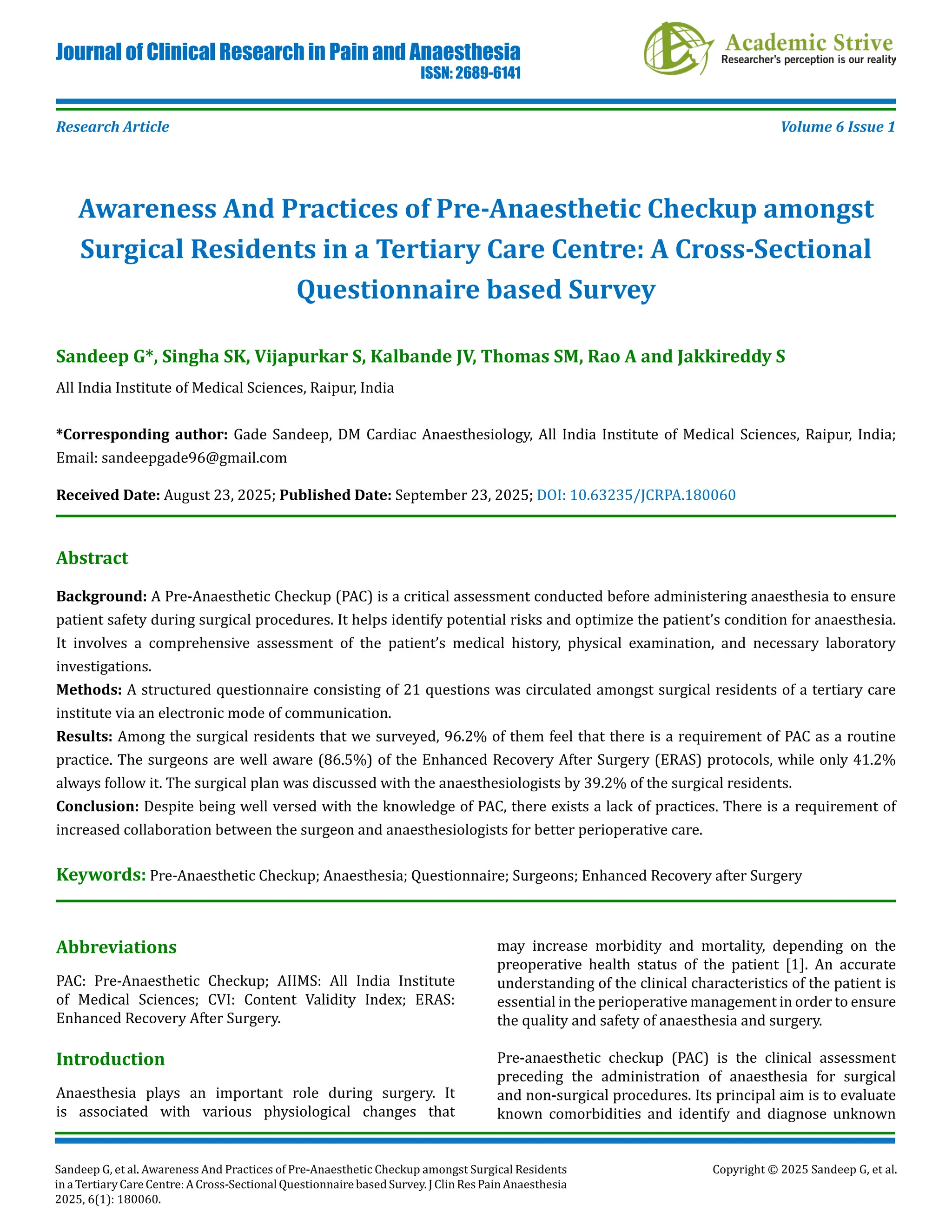 Awareness And Practices of Pre Anaesthetic Checkup amongst pdf