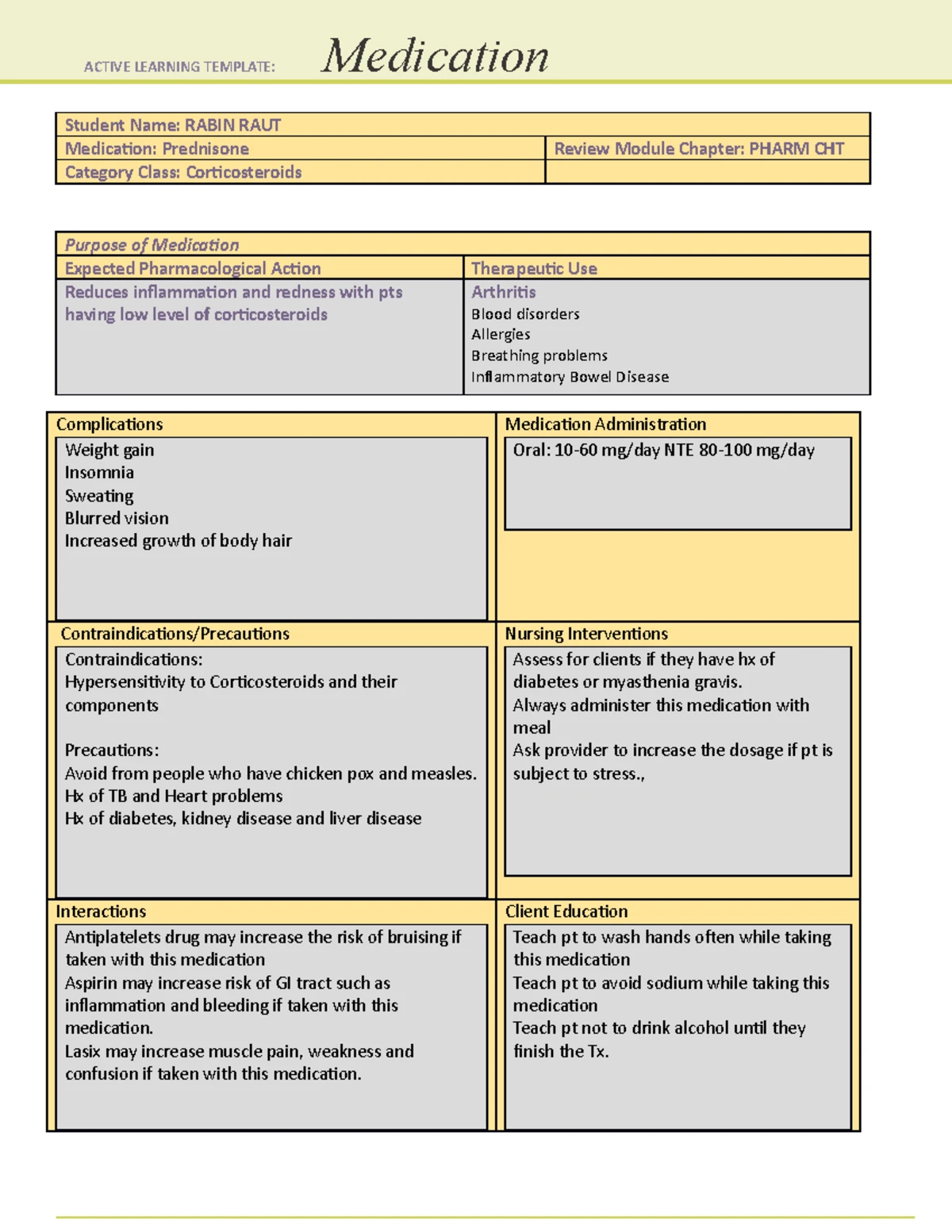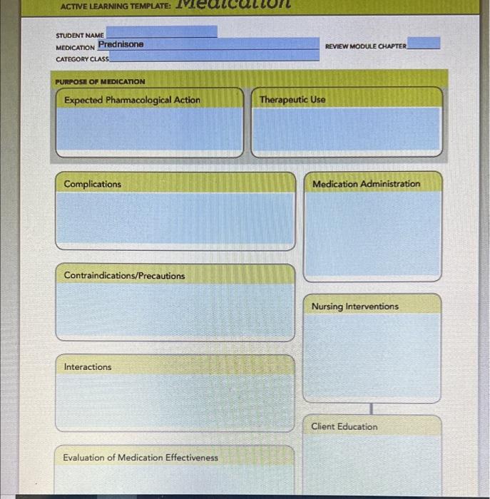 Solved ACTIVE LEARNING TEMPLATE: V STUDENT NAME Prednisone Chegg com