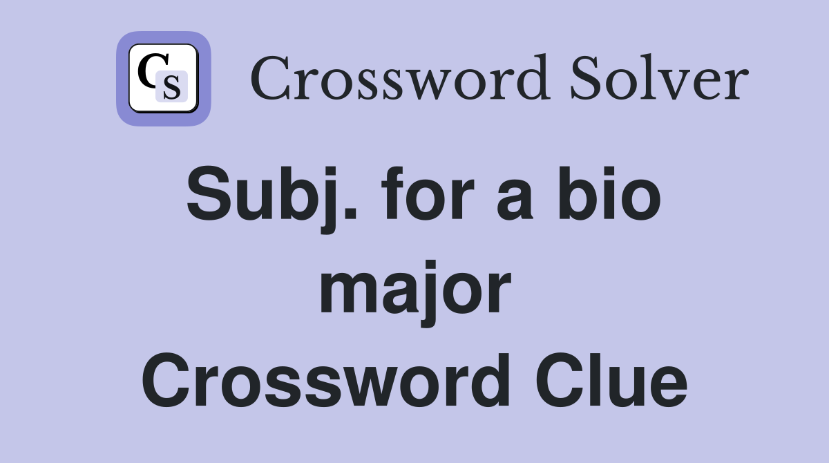 Subj for a bio major Crossword Clue Answers Crossword Solver