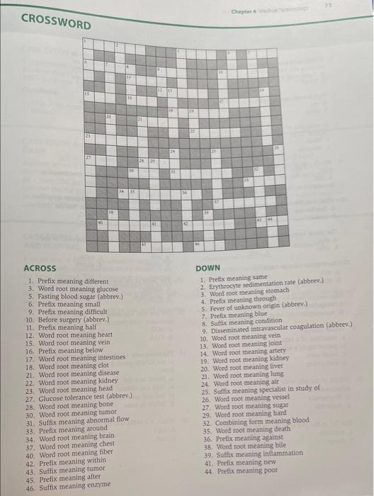 Solved CROSSWORD 140 120 38 ACROSS 1 Prefix meaning Chegg com