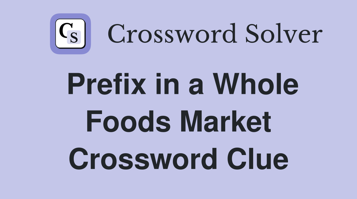 Prefix in a Whole Foods Market Crossword Clue Answers Crossword Solver