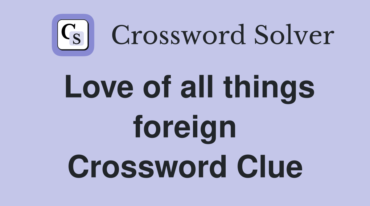 Love of all things foreign Crossword Clue Answers Crossword Solver