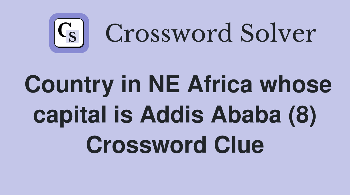 Country in NE Africa whose capital is Addis Ababa (8) Crossword Clue