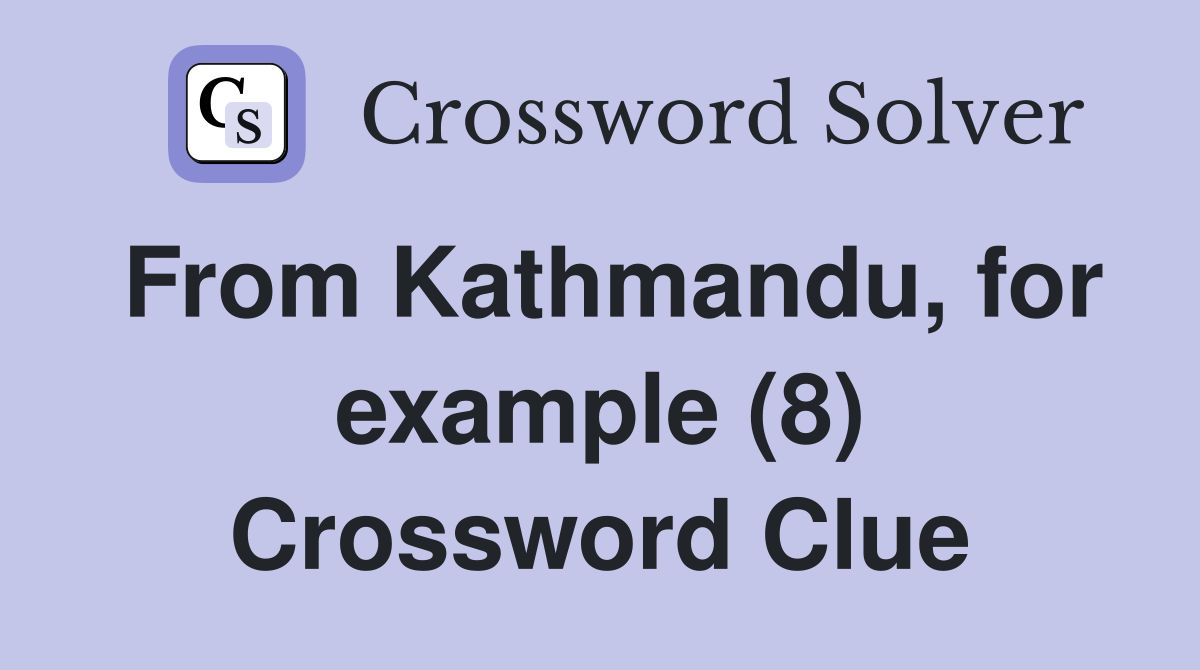 From Kathmandu for example (8) Crossword Clue Answers Crossword Solver