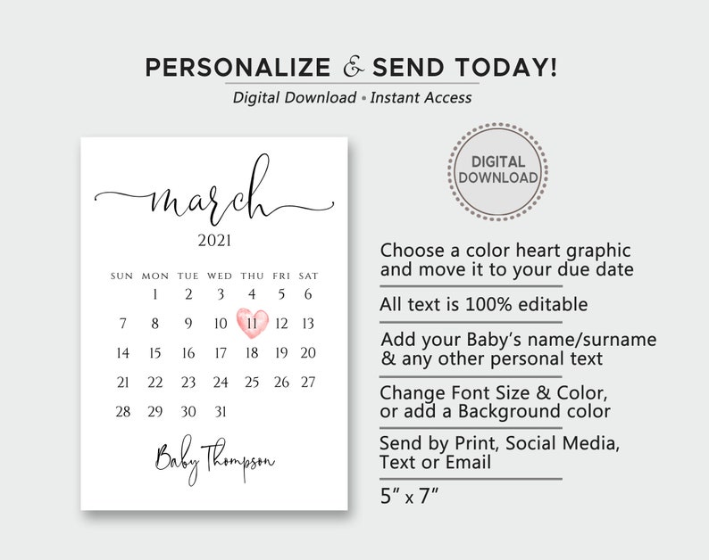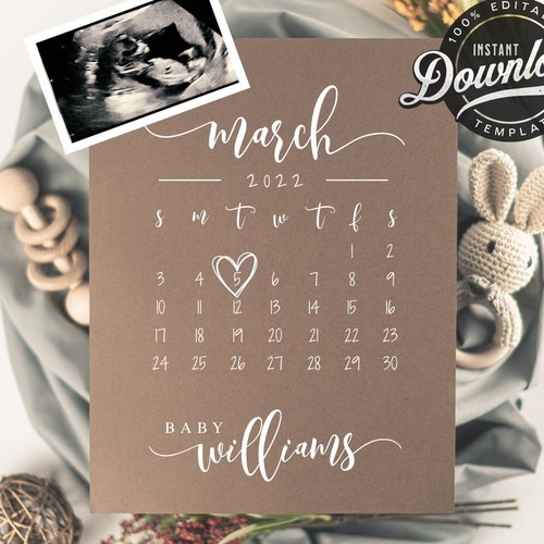 Editable Digital Pregnancy Announcement Calendar Gender Etsy