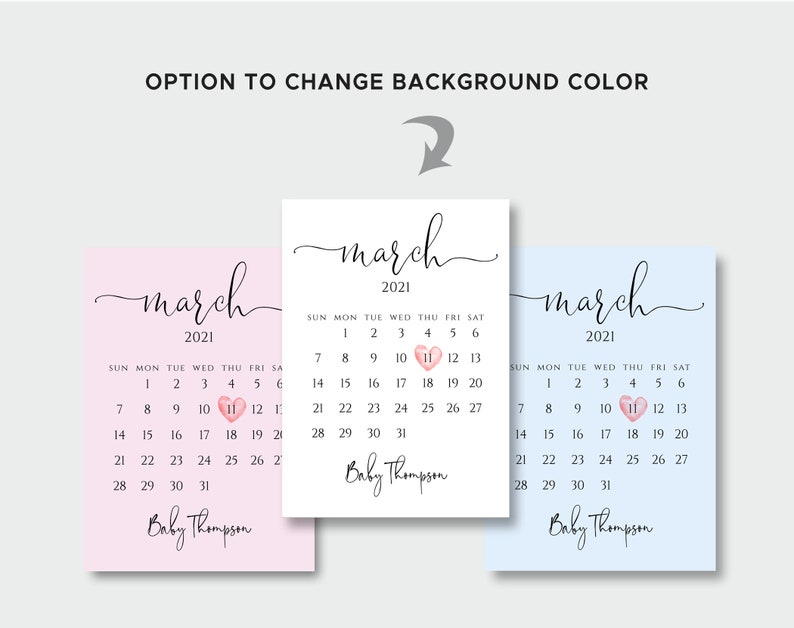 Pregnancy Announcement Calendar Gender Reveal Baby Etsy