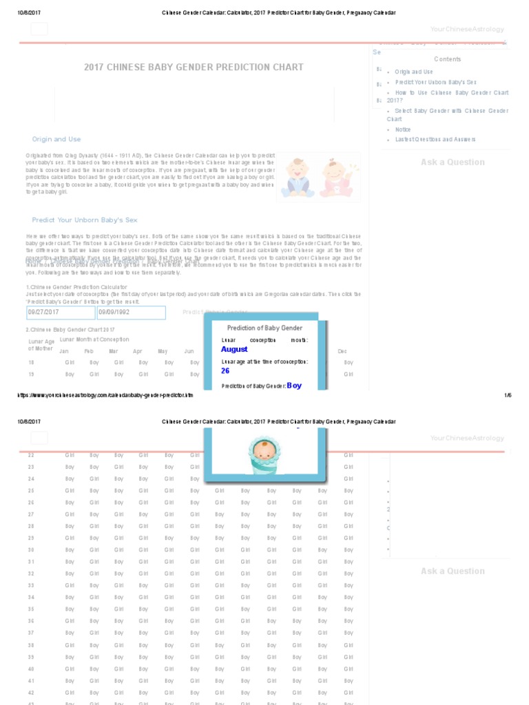 Chinese Gender Predictor Calendar Tool Baby