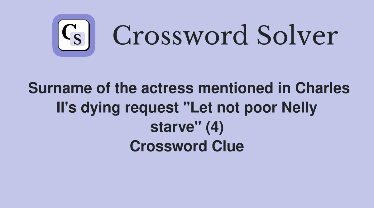 Surname of the actress mentioned in Charles II #39 s dying request quot Let not