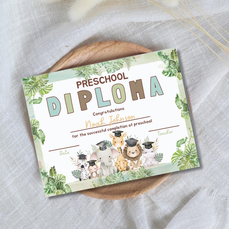 Safari Preschool Diploma Certificate Editable Canva Template Prek