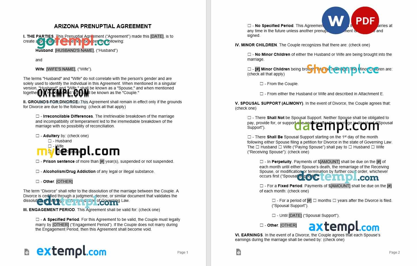Free Arizona Prenuptial Agreement Template PDF Word eForms
