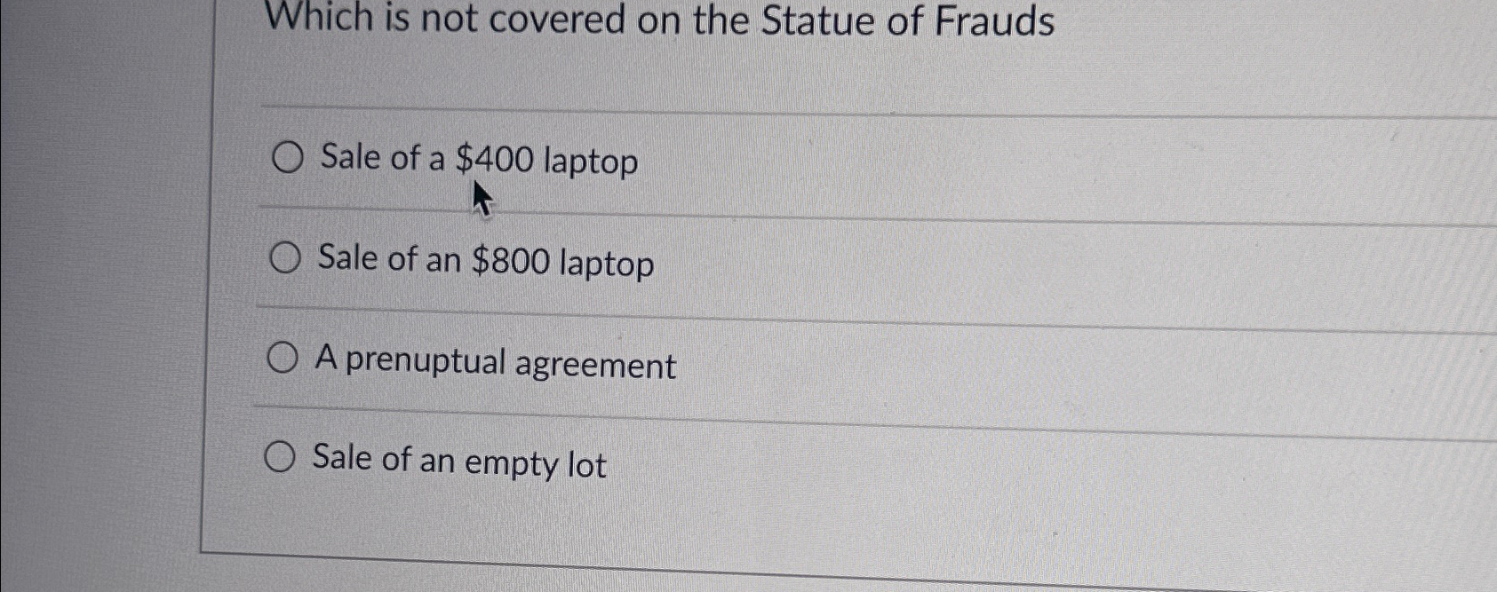 Solved Which is not covered on the Statue of FraudsSale of a Chegg com