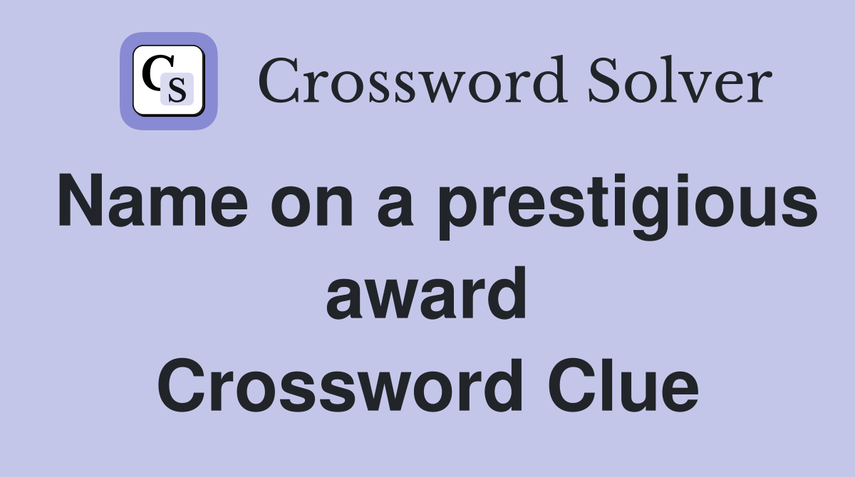 Name on a prestigious award Crossword Clue Answers Crossword Solver