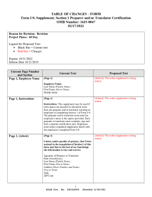 Fillable Online TABLE OF CHANGESFORM Form I 9 Supplement Section 1