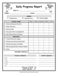 Elementary Weekly Progress Report Template