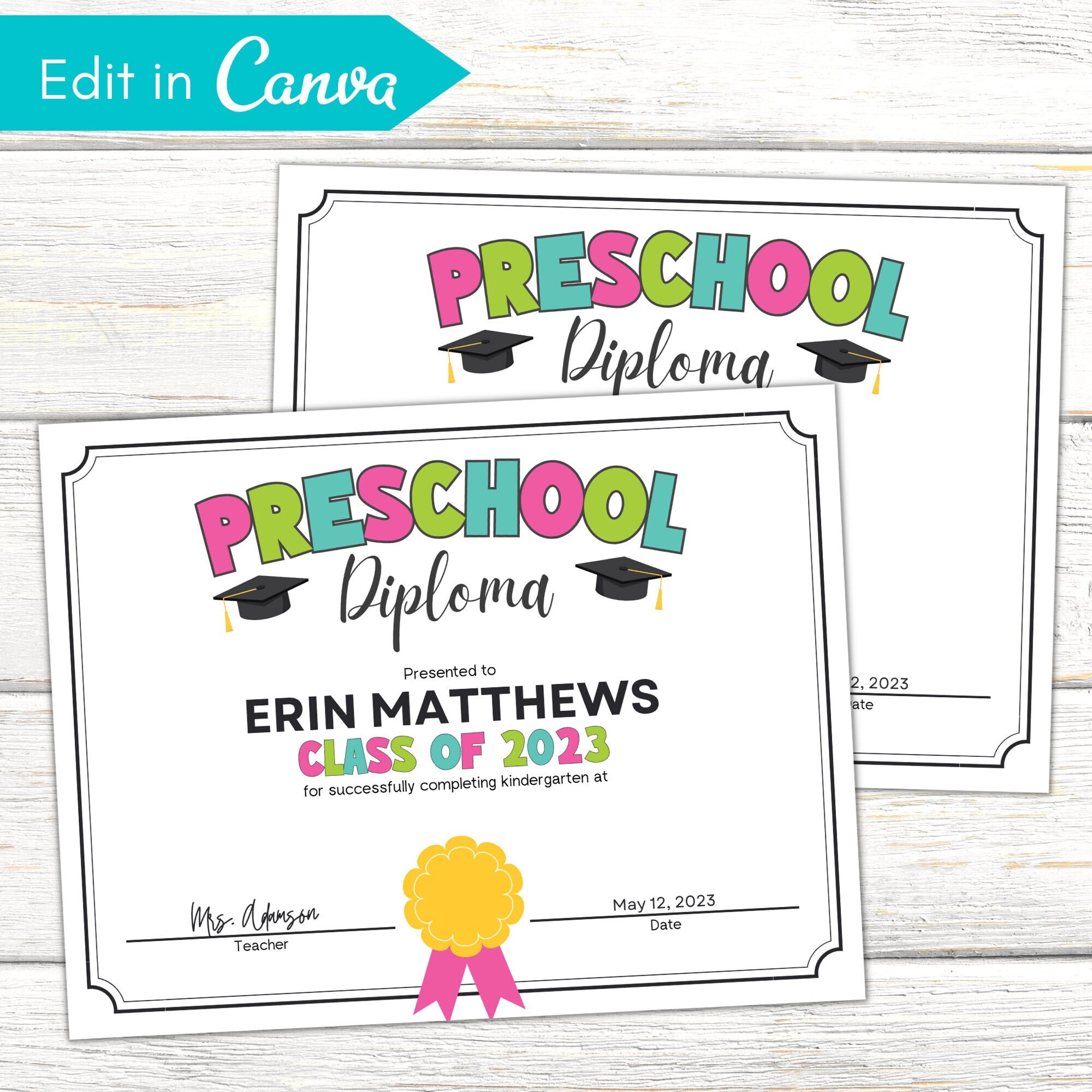 Preschool Diploma Template Preschool Graduation Printable Etsy