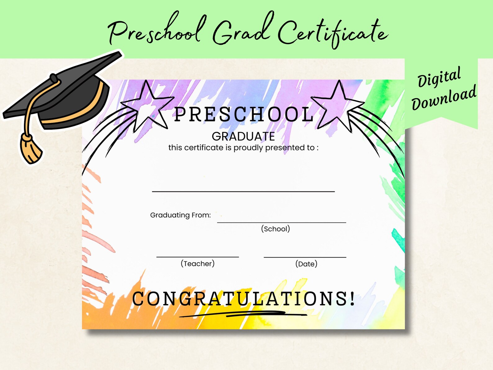 Preschool Graduation Certificate Printable: Colorful Keepsake (digital