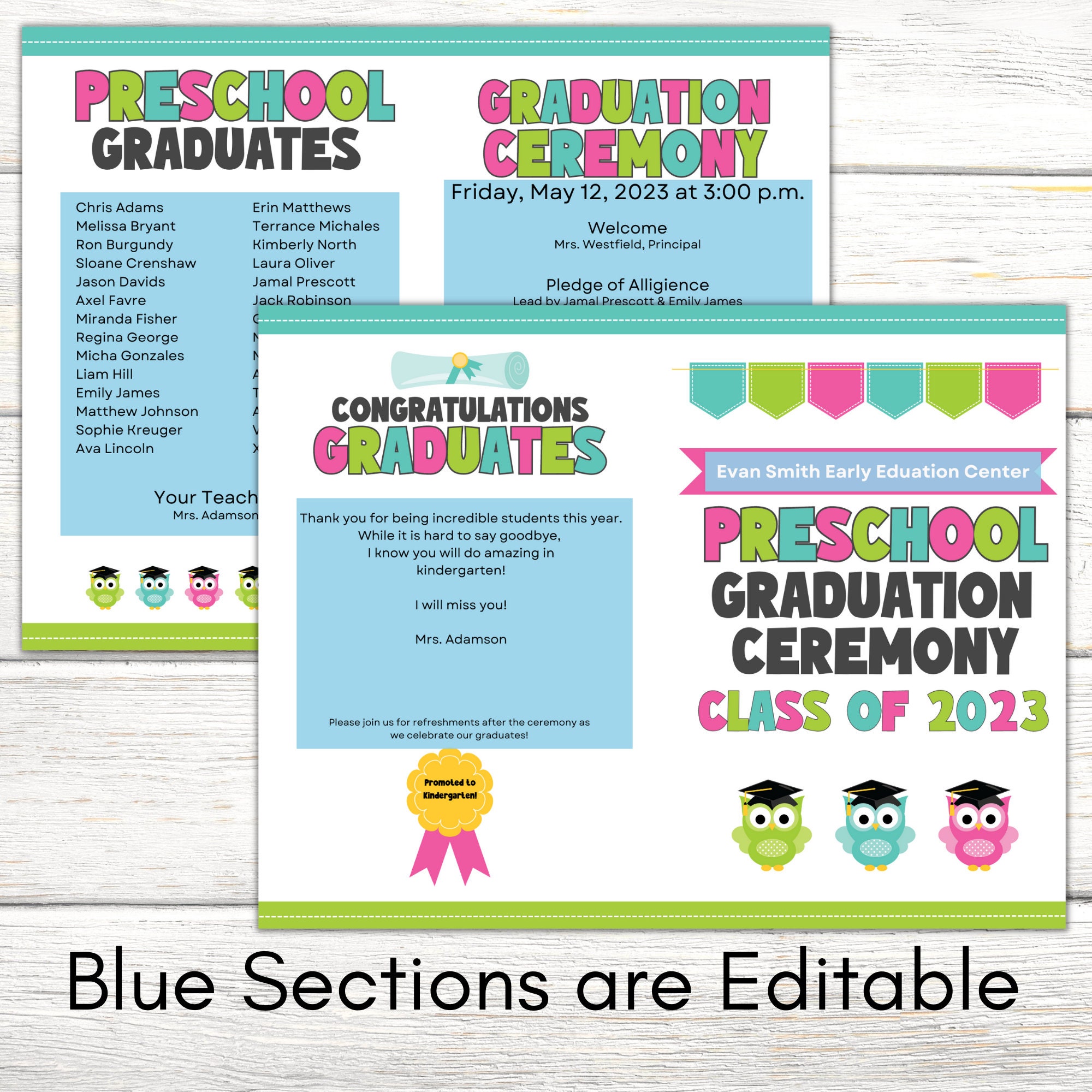 Preschool Graduation Editable Preschool Graduation Program Etsy