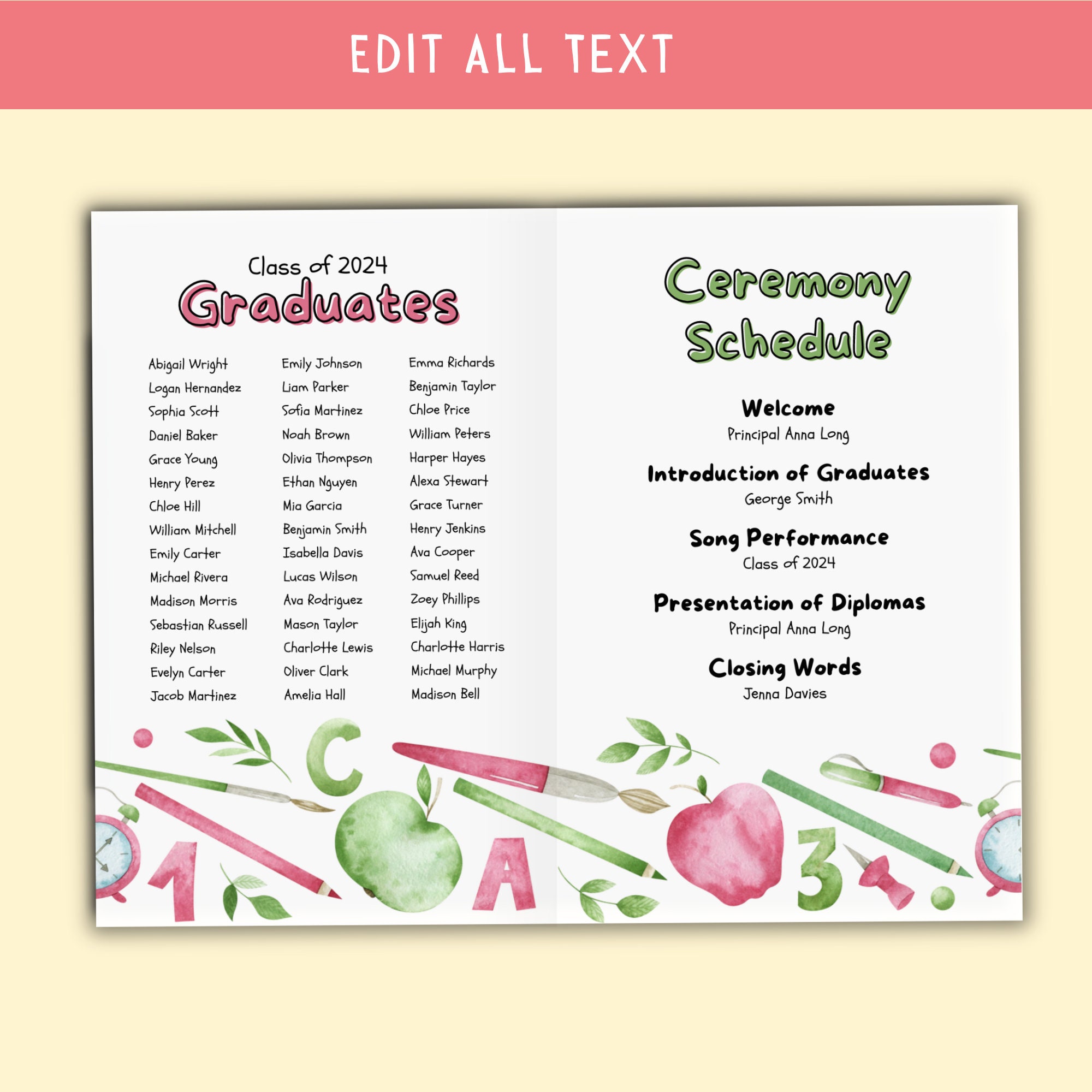 Graduation Program Editable Template for Preschool Pre K Ceremony Pro