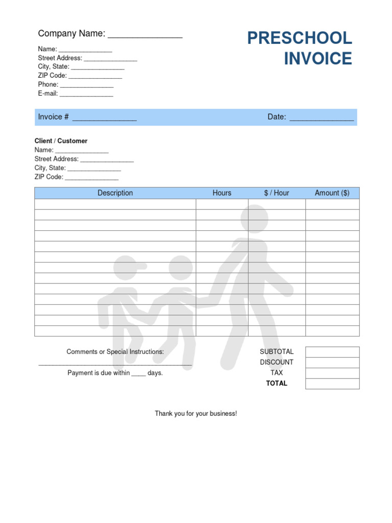 Preschool Invoice Template