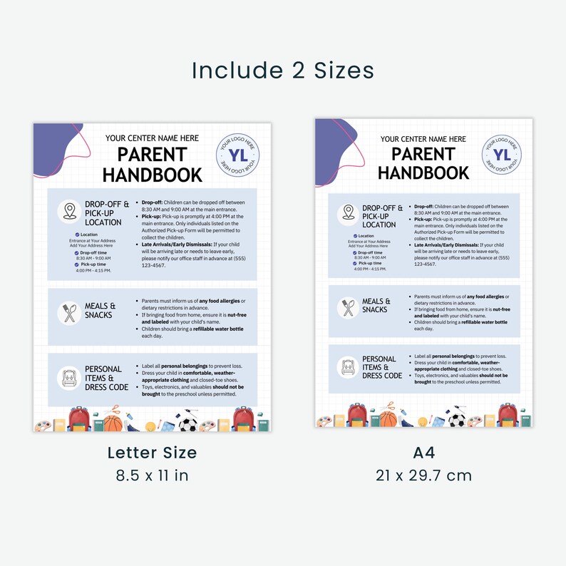 Editable Daycare Preschool Parent Handbook Fully Customizable Template